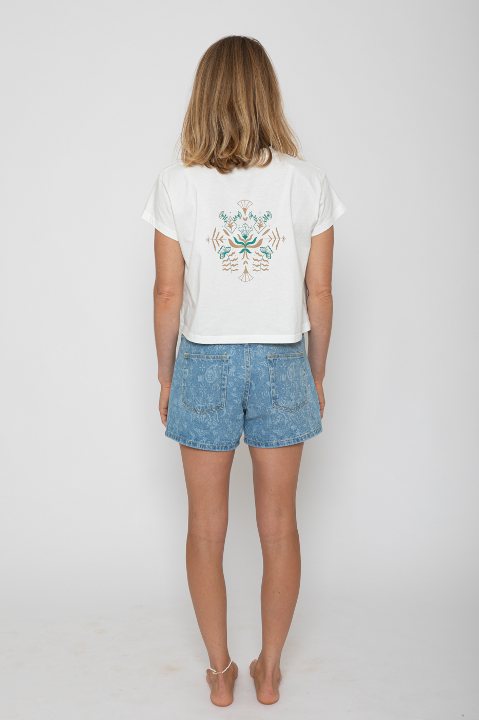 ETERNAL SUMMER Denim Short . Laser Pattern Print