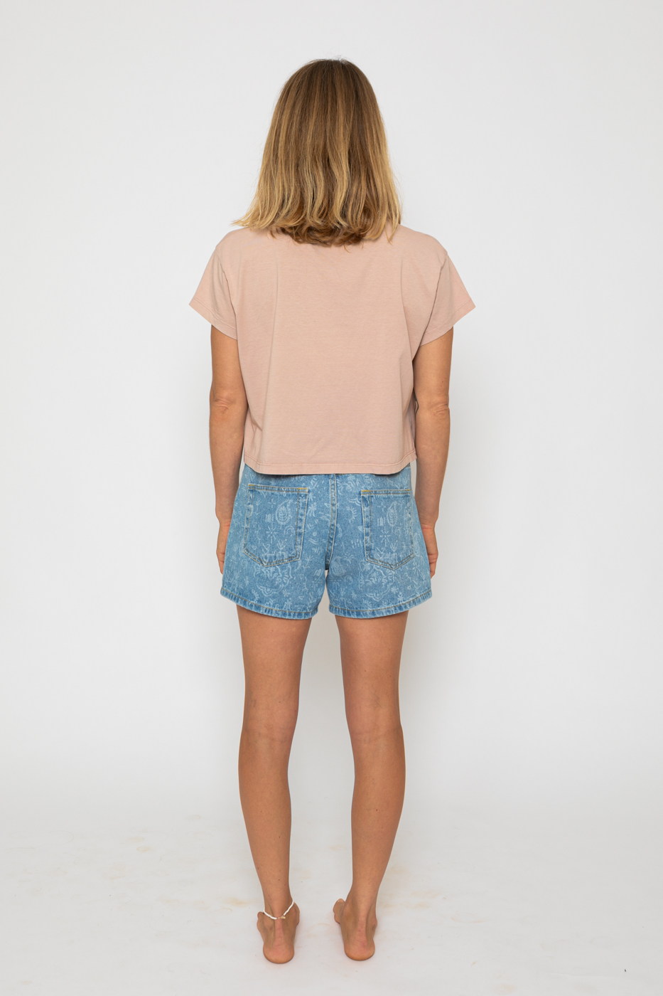 ETERNAL SUMMER Denim Short . Laser Pattern Print