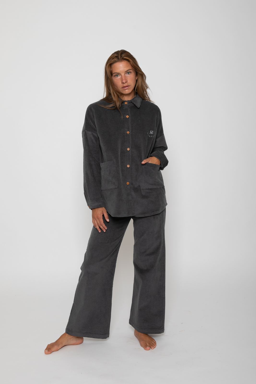 Designed for effortless style and everyday comfort, our WAVES Corduroy Wide-Leg Pants are one of our bestsellers. Made from super soft corduroy cotton with just the right amount of stretch, they offer a cozy feel that moves with you. The elastic waistband provides an easy, pull-on fit, perfect for relaxed days or elevated looks. The wide-leg silhouette gives a modern shape with a nod to vintage-inspired style, flattering and timeless all at once. Finished with two back pockets and our signature jacron paper brand label, these pants are an easy essential for any season.